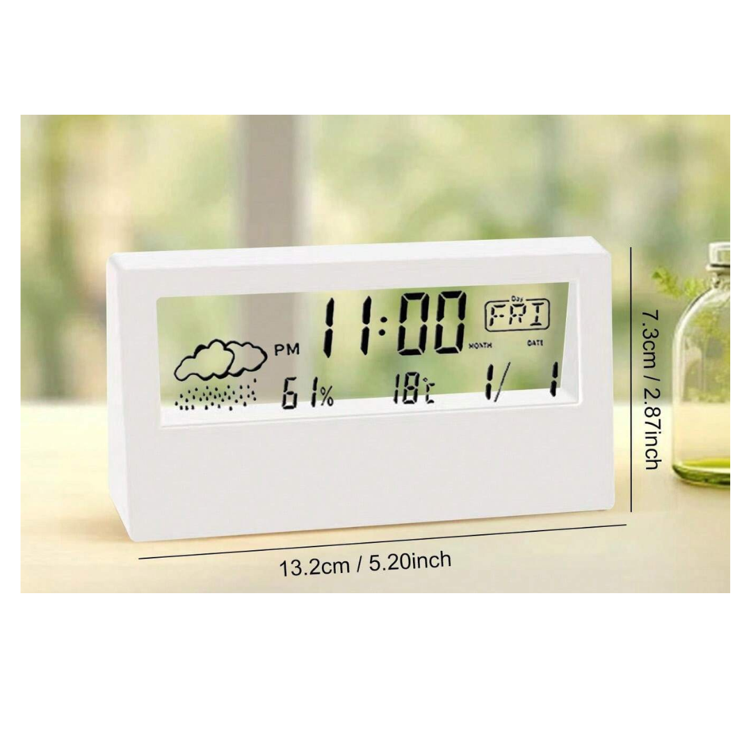 Reloj Despertador Electrónico Creativo, Reloj Digital Multifuncional De Escritorio Con Referencia Meteorológica Y Pantalla Led, Reloj Transparente Y Silencioso De Humedad Y Temperatura